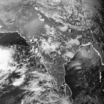 Die Trockenzeit in Indien geht zu Ende. Vom Ozean strömt nun immer mehr Feuchtigkeit heran. Verteilt über den Subkontinent finden sich hier und da schon die Quellwolken tropischer Gewitter.