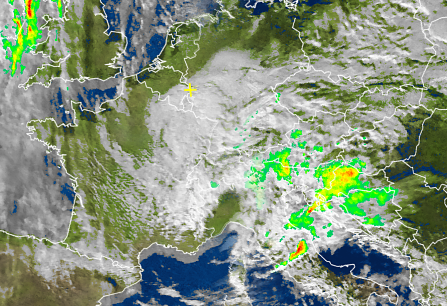 Die Wolken ziehen langsam nach Süden ab und lösen sich auf. Es droht verbreitet Nachtfrost und Reif und Eis. Vorher schneit und regnet es noch leicht heute Abend im Süden und Westen. Glätte droht auf den Straßen durch Eis und Reif morgen früh.