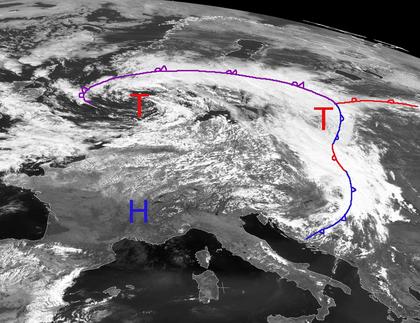 Das Tief 'Mattea' mit Zentrum über der Nordsee, das seit Tagen für viele Wolken über Mitteleuropa sorgt, schwächt sich langsam ab. Auch Tief 'Natascha' über dem Baltikum zieht mit seinen Wolken nach Osten ab. Damit wird der Weg frei für Hoch 'Charlie' über Ostfrankreich. 'Charlie' verlagert sich bis morgen bis nach Tschechien und löst die Wolken über Mitteleuropa mehr und mehr auf. (Bildquelle: Copyrigt EUMETSAT, NERC Satellite Receiving Station, University of Dundee)