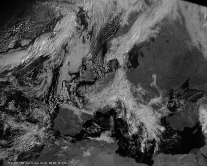 Das heutige Satellitenbild zeigt vor allem über dem Balkan, aber auch über weiten Teilen von Mittel- und Nordeuropa dichte Wolken, hierbei sorgt Tiefdruckeinfluss für sehr wechselhaftes und vielfach kühles Schauerwetter. Freundlicher und meist trocken ist es im westlichen Mittelmeer und vor allem in Osteuropa, hier ziehen meist nur wenige Wolken durch oder es bleibt wolkenlos.