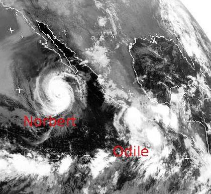 Der Hurrikan 'Norbert' liegt am Freitag über dem Pazifik, südöstlich der mexikanischen Küste, vor Niederkalifornien. Er erreicht in Böen Windgeschwindigkeiten bis zu 195 km/h. 'Norbert' zieht am Samstag in nordöstliche Richtung über Niederkalifornien hinweg. Er bringt dort auch sehr ergiebige Regenfälle. Anschließend zieht er aufs mexikanische Festland, wo er sich dann schnell wieder abschwächen wird.