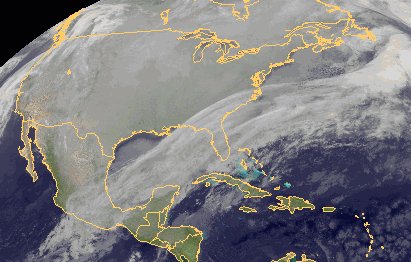 Auf dem Satellitenbild erkennt man an einem langen Wolkenband die Kaltfront eines Tiefs östlich von Neufundland. Sie erstreckt sich über den Südosten des USA und den Golf von Mexiko bis ins mittlere Mexiko und zieht noch weiter nach Süden. Auf ihrer Rückseite setzt sich Hochdruckeinfluss mit nur wenigen Wolken durch, es strömt von Norden aber auch kalte Luft nach Süden. In New Orleans liegen die Höchstwerte bei etwa 5 Grad, in Miami bei 13 Grad.