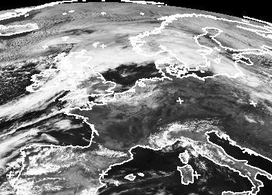 Auf dem Satellitenbild vom Sonntagmittag findet man kaum Wolken über Deutschland. Nur von den Niederlanden bis nach Nordfrankreich ziehen einige lockere und harmlose Wolken auch nach Deutschland. Nördlich von Schottland liegt das Zentrum von Tief 'Christoph'. Seine dichte Warmfrontbewölkung liegt über Südskandinavien und der Ostsee. Die Kaltfront erstreckt sich über Schottland und Irland auf den Atlantik. Ihre Wolken nähern sich langsam und bringen am Montag im Nordwesten Deutschlands Regen. (Bildquelle: NERC Satellite Receiving Station, Dundee University, Scotland, http://www.sat.dundee.ac.uk/)