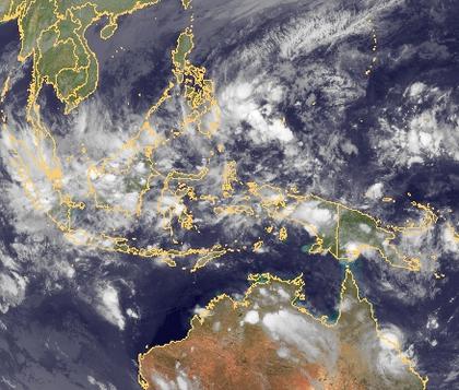 Über Indonesien und Neuguinea haben sich kräftige Schauer und Gewitter entwickelt. Diese entstehen jahreszeitlich bedingt in Zusammenhang mit der innertropischen Konvergenz.