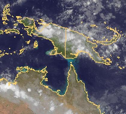 Über Neuguinea haben sich kräftige Schauer und Gewitter entwickelt.
