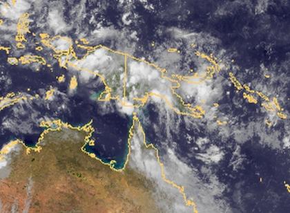 Über Neuguinea haben sich kräftige Schauer und Gewitter entwickelt. Diese entstehen jahreszeitlich bedingt in Zusammenhang mit der innertropischen Konvergenzzone.