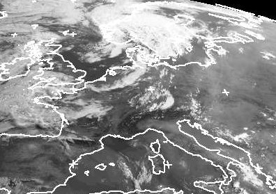 Über Deutschland erkennt man auf dem Satellitenbild vom Morgen noch ein paar dichtere Wolkenfelder. Das größte erstreckt sich über Norddeutschland bis nach Nordfrankreich. Es gehört zu dem alten Tief 'Tina', das sich heute auflöst. Dafür gewinnt Hoch 'Axel' an Einfluss. (Bildquelle: NERC Satellite Receiving Station, Dundee University, Scotland, http://www.sat.dundee.ac.uk/)