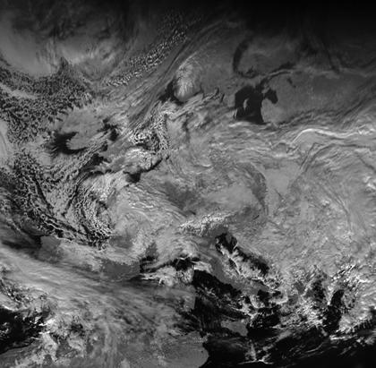 Vor allem über Mittelschweden und dem Baltikum finden sich unter Hochdruckeinfluss nur wenige Wolken. Südlich des Hochs breitet sich von Osten sehr kalte Luft über Europa aus. Dabei überwiegt auch dichte Bewölkung. Von der Adria bis zur Ägäis finden sich einige Schauer- oder Gewitterzellen.