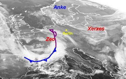 In weiten Teilen Europas überwiegt Tiefdruckeinfluss. Über den westlichen Alpen ist das kleine Tief „Zeo“ zu erkennen, es verlagert sich nach Südosten und bringt morgen von Italien bis zu den Balearen sowie an der Nordküste Afrikas teils kräftige Niederschläge. In Skandinavien sorgt das Hoch „Anke“ für ruhiges Wetter, am Freitag dehnt sich Hochdruckeinfluss auf Mitteleuropa aus.