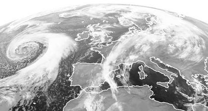Das Tief 'Nina' liegt mittlerweile über dem Nordmeer. Es hinterlässt über Mitteleuropa eine Luftmassengrenze, die sehr warme Luft über dem Kontinent von nur ein wenig kühlerer Luft im Nordwesten trennt. In ihrem Bereich liegen ausgedehnte Wolkenfelder. Auch bildet sich hier über Deutschland ein kleines Randtief, das ein paar neue Regenwolken entstehen lässt. Auf dem Atlantik erkennt man unterdessen den Wolkenwirbel von Tief 'Ornela', das sich aber kaum nach Osten bewegt.Zusammen mit dem hohen Druck über dem Kontinent führt es aber zu einer weiter anhaltenden Südwestströmung, die weiter warme Luft nach Norden transportiert. (Bildquelle: NERC Satellite Receiving Station, Dundee University, Scotland, http://www.sat.dundee.ac.uk/)