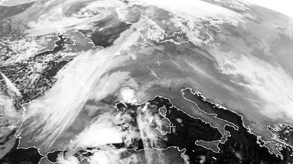 Das Wolkenband, das sich von der Nordsee bis nach Spanien erstreckt, bildet die Kaltfront eines Tiefs über der Nordsee zuwischen Schottland und Norwegen die heute vor allem in Frankreich und Nordspanien Regen bringt. Hinter der Front bilden sich in kühleren Luftmassen örtliche Schauer, die westlich der Britischen Inseln gut zu erkennen sind. Ein kleines Tief über dem östlichen Mittelmeer sorgt hier, sowie in Nordafrika für zum Teil kräftige Schauer oder Gewitter. Von Italien bis zur Ostsee und auf dem Balkan sorgt ein kleines Zwischenhoch für meist freundliches, teils aber auch trübes Wetter.