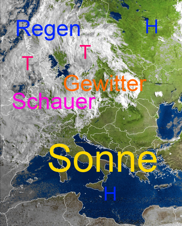Schauer- und Gewitterwolken über Mitteleuropa