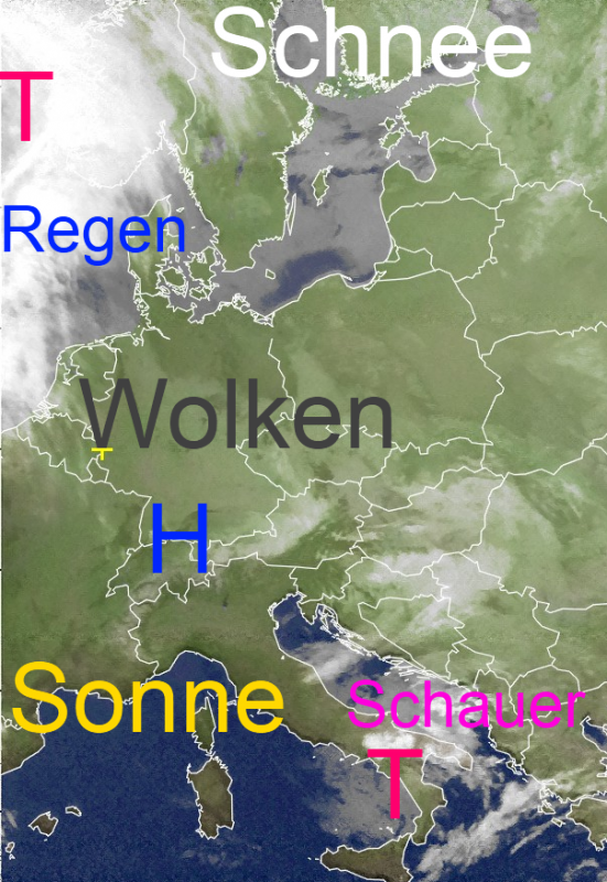 Der eine Regen zieht ab, neuer Regen naht. Dazwischen stellt sich eine kurze Wetterberuhigung ein. Meistens bleibt der Himmel über Mitteleuropa aber von dichten tiefhängenden Wolken überzogen, durch die die Sonne kaum eine Chance hat durchzuscheinen.
