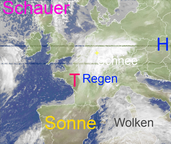 Das Tief über Frankreich sorgt für Niederschläge. In höheren Lagen Süddeutschlands fällt Schnee. Im südlichen Baden-Württemberg gab es zum Teil schon Neuschneemengen von über 20 Zentimeter. Es entstand massive Glätte. Bewölkt aber weitgehend trocken ist es in der Landesmitte und im Norden unseres Landes. Örtlich zeigt sich auch die Sonne.