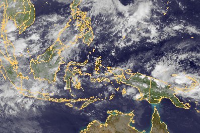 Über Neuguinea haben sich kräftige Schauer und Gewitter entwickelt. Diese entstehen dort jahreszeitlich bedingt in Zusammenhang mit der innertropischen Konvergenzzone