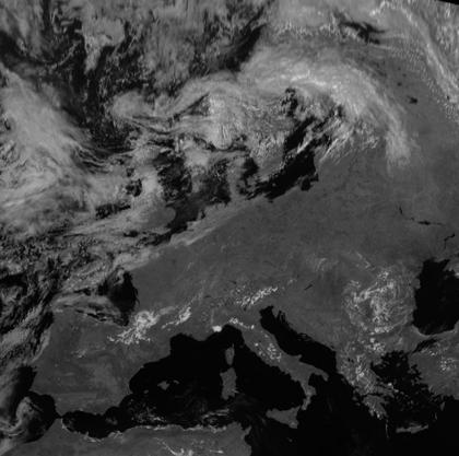 Tief 'Dennis' liegt mit seinem Zentrum über Skandinavien. An seiner Kaltfront findet sich kaum kaltfronttypische Bewölkung. Jedoch ist die Lage der Kaltfront dennoch im Satellitenbild auszumachen. Sie erstreckt sich von der Ostsee über Vorpommern bis zur Bretagne. Auf ihrer Ostseite liegt kaum Bewölkung. Auf ihrer Rückseite hat sich dagegen in ein wenig feuchtkühlerer Luft flache Quellbewölkung bilden können.