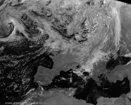 Auf dem heutigen Satellitenfoto ist die Südhälfte Europas zum größten Teil wolkenlos, nur ein Tief in der Adria sorgt hier für Schauer oder Gewitter. Im nördlichen Europa sorgt dagegen verbreiteter Tiefdruckeinfluss für meist sehr wechselhaftes und überwiegend kühles Wetter, bei dem sich wiederholt Schauer bilden.