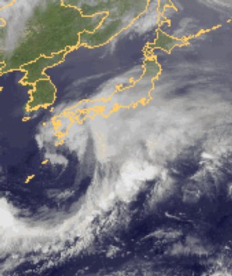 Ein kräftiges Sturmtief liegt derzeit Süden von Japan. Es zieht langsam nordwärts und sorgt dabei von Süden her teils für schwere Sturmböen und teils kräftige Regenfälle und Gewitter.