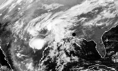 Über dem mittleren Westen der USA sind sogenannte Superzellen mit sehr hochreichenden Wolken zu erkennen. Es entstehen starke Gewitter, wenn sehr kalte Luft aus dem Norden auf sehr warme Luft aus dem Süden trifft. In manchen dieser Zellen sind bei bestimmten Voraussetzungen die Entwicklung von Tornados möglich. (Quelle: http://www.sat.dundee.ac.uk)