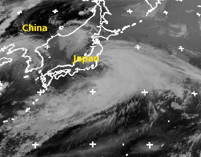 Der Taifun 'Man-Yi', dessen Zentrum sich östlich von Japan befindet, hat sich nun deutlich abgeschwächt und erreicht nur noch mittlere Windgeschwindigkeiten von 100 km/h, in Böen bis 130 km/h. In Japan kommt es heute vor allem im Norden noch zu stärkeren Niederschlägen. 'Man-YI' zieht unter weiterer Abschwächung nordostwärts weiter und löst sich wahrscheinlich bald auf. (Bildquelle: http://www.sat.dundee.ac.uk)