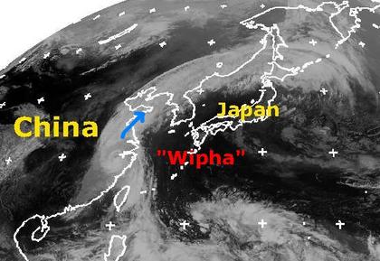 Taifun 'Wipha' liegt am Mittwoch morgen über der chinesischen Küste. Seine mittlere Windgschwindigkeit hat sich auf 95 km/h abgeschwächt, in Böen werden noch 120 km/h erreicht. An der Küste haben die Winde und der Regen jedoch schon für Überschwemmungen und auch Tote gesorgt. 'Wipha' zieht nun in nordöstlicher Richtung weiter und bringt noch weiter teils heftige Regenfälle mit sich. (Bildquelle: NERC Satellite Receiving Station, Dundee University, Scotland, http://www.sat.dundee.ac.uk/)