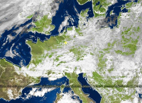 Das Satellitenfoto von heute Nachmittag zeigt oft dichte Wolken über dem südlichen Frankreich und über den Alpen, diese Wolken gehören zu einem Tief über den Südalpen und bringen in den beschriebenen Regionen verbreitet unbeständiges Schauerwetter, nicht selten sind dabei auch teils kräftige Gewitter mit Starkregen, Hagel und einzelnen Sturmböen möglich.