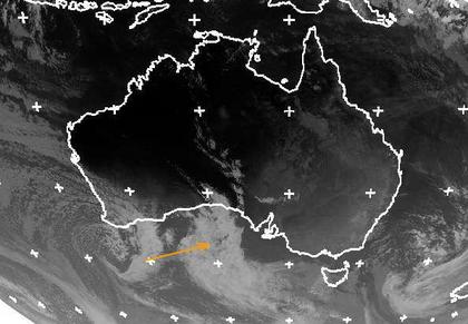 Der Ausschnitt zeigt ein Tief südwestlich von Australien. Es bewegt sich in den nächsten Tagen nach Osten zur Großen Australischen Bucht und sorgt für teils kräftige Regenfälle entlang der australischen Südküste. (Bildquelle: NERC Satellite Receiving Station, Dundee University, Scotland, http://www.sat.dundee.ac.uk/)