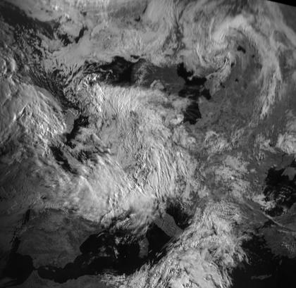 Das kräftige Tief 'Bergthora' mit Zentrum über der Nordsee sorgt für eine weitgehend geschlossene Wolkendecke von Südskandinavien bis zum Golf von Genua. Das eigentliche Frontensystem erstreckt sich mit den höheren Wolken im Bogen von Schottland über Dänemark und Ostdeutschland zu den Alpen. Auf seiner Rückseite strömt von Westen kältere Luft heran, in ihrem Bereich ist die Wolkendecke zwischen England und Westdeutschland am Sonntagmorgen noch flacher. Zum Teil kann diese heute auch ein wenig auflockern, jedoch bilden sich auch in ihr teils kräftige Schauer oder sogar Gewitter.