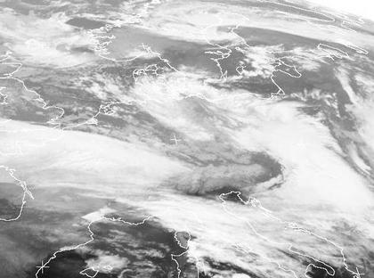 Wie aus dem meteorologischen Bilderbuch präsentiert sich das kleine Tief 'Isabel' am Dienstagmorgen. Die bereits okkludierte Front erstreckt sich in einem Bogen von Polen über Ost- und Nordsee bis nach Niedersachsen, die Warmfront verschwindet über Ungarn und der Ukraine. Die Kaltfront hat die Alpen bereis in Richtung Italien überquert, von Westen her nähert sich jedoch bereits das nächste Tief, sodass sich das Wolkenband über Frankreich bereits wieder nach Norden biegt.