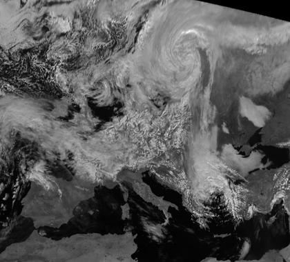Auf dem heutigen Satellitenbild von Europa ist sehr gut ausgeprägt über Finnland das Tief 'Judy' zu erkennen.