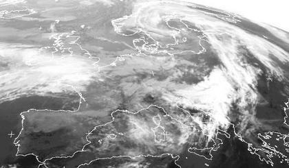Auf dem Satellitenbild von Sonntag früh erstreckt sich die Kaltfront des Tiefs 'Ole' von Skandinavien über Weißrussland bis an die Adria. Hinter ihr bilden sich in feucht-kühler Meeresluft Schauer, vereinzelt auch Gewitter die heute im Laufe des Tages über Nord- und Mitteleuropa hinwegziehen. Vom Atlantik zieht ein weiteres Tief heran. Seine Fronten haben bereits die Britischen Inseln erreicht. Über der Iberischen Halbinsel sorgt Hochdruckeinfluss für sonniges Wetter.