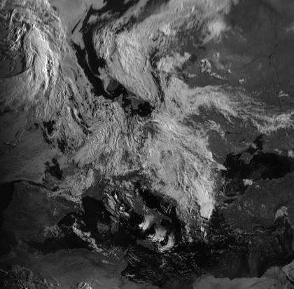 Mitteleuropa zeigt sich in dichte Wolken gehüllt. Diese werden von Tief 'Renate' mit Zentrum über Südschweden verursacht. Über Nordrussland befindet sich Hoch 'Christhard'