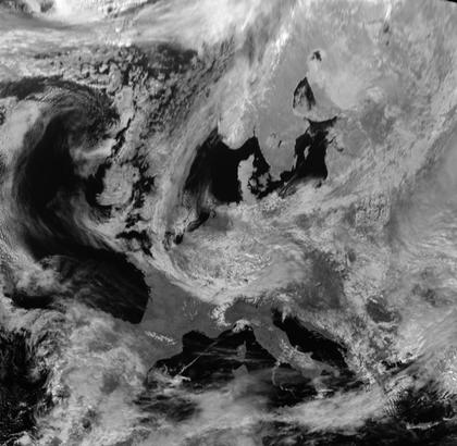 Das Tief 'Yve' liegt am Samstag seinen dichten Wolken schon über Süddeutschland. Von Norden lockert die Bewölkung unter zunehmendem Hochdruckeinfluss immer mehr auf, über Schleswig-Holstein ist es meist schon wolkenlos. Ein Ausläufer von Tief 'Yve' erstreckt sich im Bogen über Frankreich und durch den Bereich des Hochs 'Isidor' über den Britischen Inseln bis nach Westnorwegen. Er ist als Wolkenband gut zu erkennen. Es trennt sehr kalte Luft auf seiner Ostseite von etwas milderer Luft im Westen.