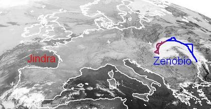 Das Tief „Zenobio“ liegt am Mittwoch über Osteuropa, man erkennt sein Frontensystem an einer Wolkenspirale. In Rumänien und in der Ukraine bringt es heute noch kräftige, zum Teil unwetterartige Niederschläge. Schwacher Tiefdruckeinfluss sorgt für Wolken und einzelne Schauer auf der Iberischen Halbinsel. In Frankreich dominiert Hochdruckeinfluss, auf der Nordostseite des Hochs „Jindra“ bei Irland strömt noch feuchte und wolkenreiche Luft nach Mitteleuropa ein. (Bildquelle: NERC Satellite Receiving Station, Dundee University, Scotland, http://www.sat.dundee.ac.uk/)