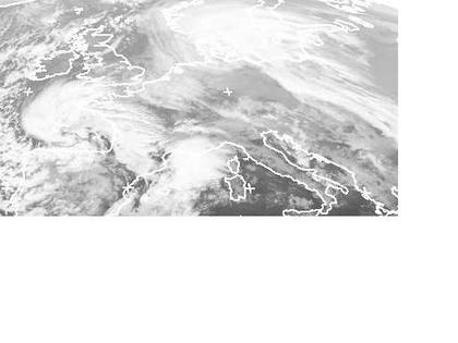 Auf dem Satellitenbild von Samstag früh sind über der Biskaya und der Ostsee dichte Wolken zu erkennen. Sie gehören zu zwei Tiefdruckgebieten und sorgen gebietsweise für Regen oder Schnee. Während sich das Tief in Osten langsam auflöst, verlagert sich das Biskayatief weiter nach Westen und erreicht Morgen auch Deutschland. (Bildquelle: NERC Satellite Receiving Station, Dundee University, Scotland, http://www.sat.dundee.ac.uk/)