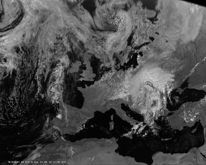 Auf dem heutigen Satellitenbild sind zwei ausgeprägte Tiefdruckgebiete zu erkennen. Das Eine liegt über weiten Teilen Osteuropas und bringt dort zum Teil kräftige und ergiebige Niederschläge. Das Andere liegt über Nordschweden und bringt Skandinavien vielfach sehr wechselhaftes Wetter mit zeitweiligen Schauern. Sonst ist es in Europa aber auch weitgehend trocken und vielfach freundlich.
