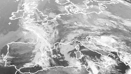 Leichter Tiefdruckeinfluss und feuchte Luftmassen bestimmen zurzeit das Wetter in weiten Teilen Europas. Auf dem Satellitenbild von Montag früh sind verbreitet teils dichte Wolkenfelder zu erkennen. Im Laufe des Tages werden sich auch gebietsweise wieder Schauer und Gewitter bilden. (Bildquelle: NERC Satellite Receiving Station, Dundee University, Scotland, http://www.sat.dundee.ac.uk/)