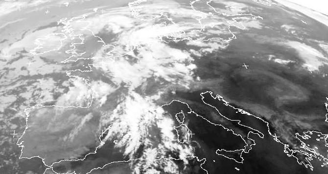 Die Okklusionsfront des Tiefs 'Gerrit' über Großbritannien reicht in einem Bogen von Irland über Schottland bis zur Nordsee. Von der Nordsee aus reicht die Warmfront über Dänemark bis in die Ostsee, die Kaltfront erstreckt sich nach Süden bis zum Mittelmeer. Zwischen und entlang der Fronten bilden sich im Laufe des Tages in der schwülwarnen Luft zum Teil kräftige und unwetterartige Schauer und Gewitter. Auf dem Balkan sorgt Hochdruckeinfluss für einen fast Wolkenfreien Himmel.