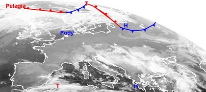 Auf dem Satelittenfoto von heute Morgen sind viele Wolken über dem nördlichen Mittelmeer von Spanien, über Südfrankreich, Italien bis in die Türkei auszumachen. Weiter nördlich, d.h. von Portugal, über das spanische und französische Festland, Deutschland und weiter östlich zeigt sich meist freundliches Wetter mit viel Sonnenschein und nur wenigen Wolken. Tiefausläufer bei Island und Nordskandinavien sorgen für viele Wolken und Niederschläge in Irland, Schottland und im Norden von Skandinavien bis nach Russland.