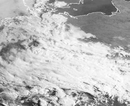 Über Deutschland sowie dem weiteren Alpenumfeld erkennt man viele dichte Wolken, in denen teils auch Gewitter entstehen. Polen ist dagegen weitgehend wolkenfrei.