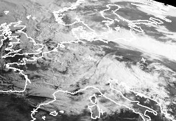 Über Mitteleuropa hat sich Tiefdruckeinfluss ausgebreitet. Direkt über Deutschland liegt dabei kalte Luft, in der sich Schauer und Gewitter bilden. Dabei ist es verbreitet ziemlich wolkig. (Bildquelle: NERC Satellite Receiving Station, Dundee University, Scotland, http://www.sat.dundee.ac.uk/)