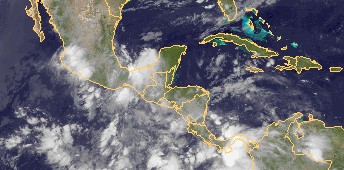 Auf dem heutigen Satellitenfoto von Mittelamerika zeigt sich besonders über dem Süden Mexikos und über Panama teils dichte und hochreichende Quellbewölkung, die dort für vielfach kräftige Gewitter mit ergiebigen Niederschlägen sorgen.