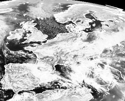 Vor allem über der Südhälfte Deutschlands liegt noch die teils dichte Bewölkung des sich abschwächenden Tiefdruckeinflusses. Weiter im Süden, über Italien und dem westlichen Mittelmeer sorgt das Tief 'Evi' für viele Wolken. Von Norden her gelangt der Nordseeraum und zunehmend auch Deutschland aber unter Hochdruckeinfluss. Dabei fließt aber von Norden noch sehr kühle Luft heran, in der sich über der Nordsee und Norddeutschland viele, wenngleich auch lockere, Wolken gebildet haben. (Bildquelle: NERC Satellite Receiving Station, Dundee University, Scotland, http://www.sat.dundee.ac.uk/)
