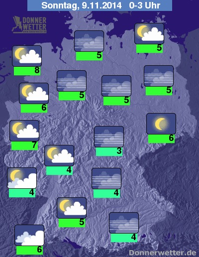 In weiten der Teilen der Nord- und Osthälfte ist mit Nebelbildung zu rechnen, im Westen und Südwesten zeigt sich der Himmel locker oder wechselnd bewölkt.