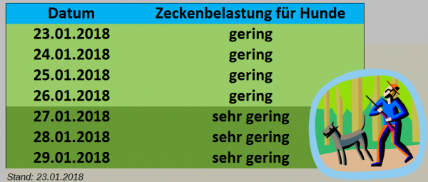 Zur Zeit bestehen praktisch kaum oder nur sehr geringe Zeckenrisiken für Mensch und Tier; in den Nächten ist es für die Blutsauger einfach zu kalt.