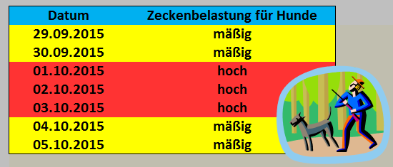 Trotz einiger Nächte mit Bodentemperaturen um 0 Grad C in den Mittelgebirgen, sorgen milde Tage mit Werten bis zu 18 Grad C für ein weiterhin erhöhtes Hundezeckenrisiko.