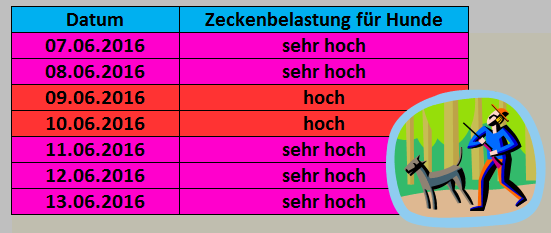 Hundezecken: Durchschnittliche Belastung in Europa bis 10.06.2016