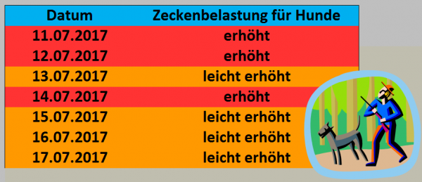 Die große Hitze ist kommenden Tagen nur selten zu erwarten, wohl aber zeitweilige Schauer und Gewitter. Das Hundezeckenrisiko zieht daher wieder etwas an, betroffen ist vor allem der Süden des Landes.