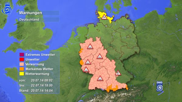 Nach den heißen Tagen kommt jetzt mit Tief "Paula" von Westen etwas kühlere aber feuchte Luft nach Deutschland. Diese löst vor allem im Südwesten im Laufe des Tages Schauer und Gewitter aus. Vor allem am Nachmittag und Abend können die Gewitter auch unwetterartig stark ausfallen.
