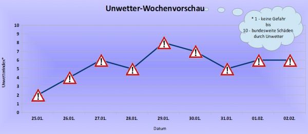 Zwar starten wir noch mit verbreitet mildem, überwiegend wolkigem, aber auch meist trockenem Wetter in die Woche, bereits am Dienstag Abend gelangt jedoch voraussichtlich das erste Sturmfeld auf den Nordwesten des Landes, es breitet sich unter Abschwächung dann auch weite Landesteile aus, dabei ist im Norden und Westen mit teilweise stürmischem, sonst mit teils starkem Wind zu rechnen. Nach einer Wetterberuhigung am Donnerstag könnte am Freitag ein ausgewachsener Sturm das Land treffen, dabei sind selbst im Flachland Orkanböen nicht auszuschließen. In den Folgetagen bleibt es weiterhin oft stark windig oder stürmisch. Ein Wintereinbruch ist jedoch weit und breit nicht in Sicht!